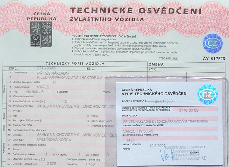 Doporučujeme:Pro legálníjízdu po pozemních komunikacíje zapotřebísi zároveňu svého prodejce objednat technickéosvědčenína vozík VARES. Technicke osvědčeni opravňuje Vaši tažnou sestavu k legálni jízděpo pozemních komunikací.