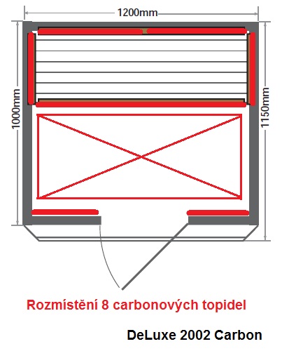 Rozmístění karbonových topidel v kabině sauny DeLUXE 2002 CARBON