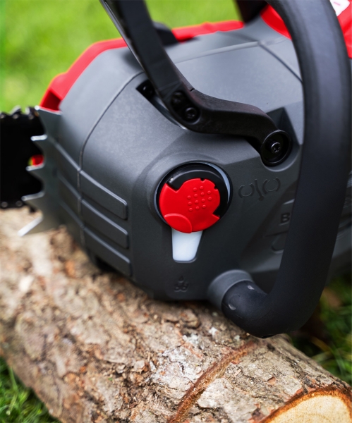 - Bezpečnost zajišťuje integrovaná brzda řetězu, která okamžitě zastaví řetěz při zaseknutí              například v případě zpětného rázu
