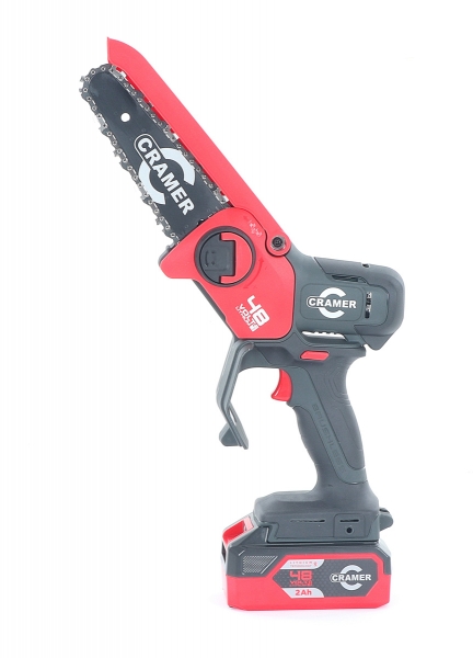 Cramer 48MCS je lehká a kompaktní akumulátorová prořezávací pila pro použití na zahradě, která nabízí dokonalou rovnováhu mezi výkonem a manévrovatelností pro snadné zvládnutí běžného řezání a prořezávání. Bezpečnost je zaručena díky spuštění dvěma tlačítky a krytu řetězu.
