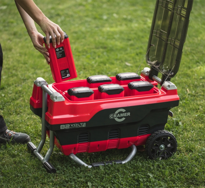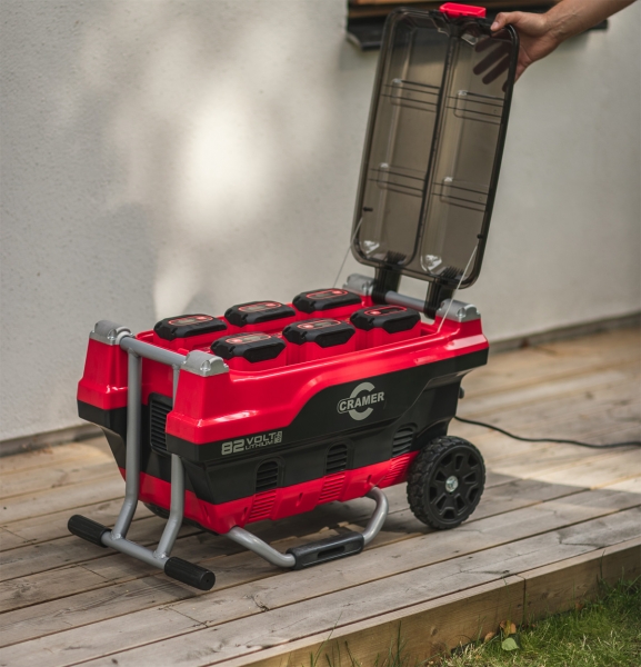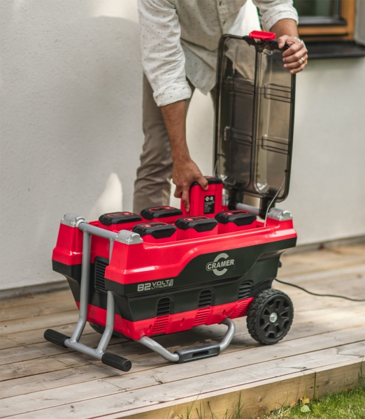 Rychlonabíjecí stanice Cramer 82C6 82V 8A je vybavena šesti sloty, integrovaným chlazením baterie a LED indikátorem stavu nabití. Plně kompatibilní se všemi profesionálními 82V bateriemi Cramer.