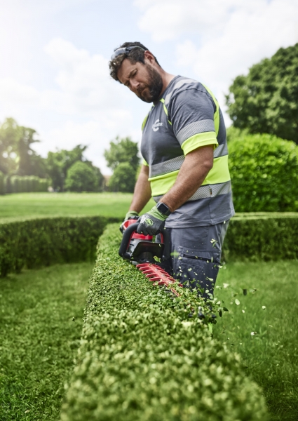- Vysoce ergonomické s vyváženou hmotností baterie mezi přední a nastavitelnou zadní rukojetí pro snížení namáhání paží obsluhy