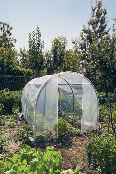 Tento kvalitní zahradní fóliovník italské značky VERDEMAX má odolný nerezový rám z pozinkované oceli sestavený z oblouků a nosníků. Vysoce kvalitní průhledná plastová fólie s odolným anti UV filtrem zajišťuje delší životnost, chrání před větrem, deštěm, zimou i UV zářením. Fóliovník má vstupní otvor na zip pro snadný přístup 80x170 cm. Otevření lze zajistit popruhy.