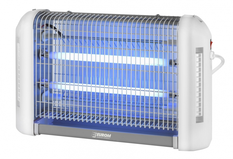 hubič hmyzu Fly Away 16 Allround - žádné škodlivé a chemické látky - čistý a hygienický provoz - přitahuje hmyz - snadné čistění - přístroj na hubení hmyzu používaný v domácnostech, obchodech, restauracích po celém světě - ultrafialové lampy lákají létající hmyz a síť vysokým napětím uvnitř klece ho ničí napětí: 230V / 50 Hz pokrytí: max. 100 m2 příkon: 23 W UV lampa: 2x 8W síť s vysokým napětím:: 2400 V materiál: kov- plast rozměry: 42,5 x 9 x 26,5 cm hmotnost: 2 kg