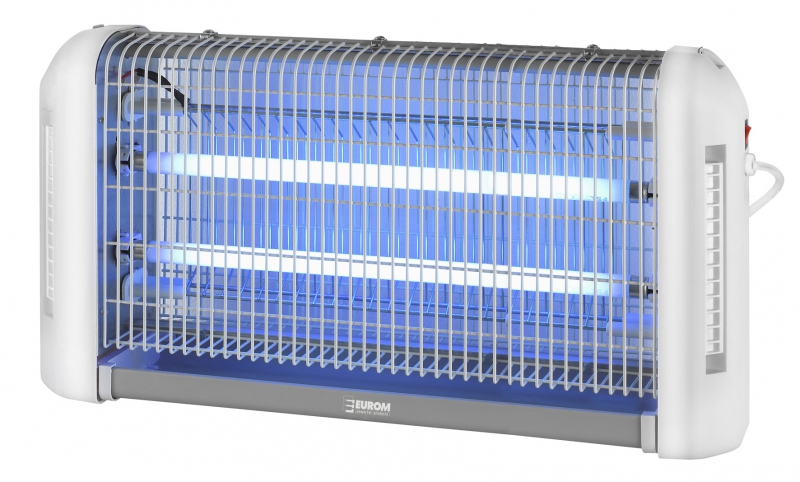 hubič hmyzu Fly Away 40 Allround - žádné škodlivé a chemické látky - čistý a hygienický provoz - přitahuje hmyz - snadné čistění - přístroj na hubení hmyzu používaný v domácnostech, obchodech, supermarketech a restauracích po celém světě - ultrafialové lampy lákají létající hmyz a síť vysokým napětím uvnitř klece ho ničí napětí: 230V / 50 Hz pokrytí: max. 200 m2 příkon: 43 W UV lampa: 2x 20 W síť s vysokým napětím:: 2400 V materiál: kov- plast rozměry: 72,6 x 9 x 26,5 cm hmotnost: 3,6 kg
