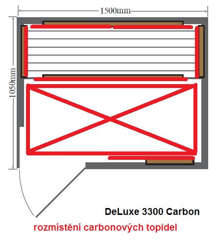 Rozmístění karbonových topidel v kabině sauny DeLUXE 3300 CARBON