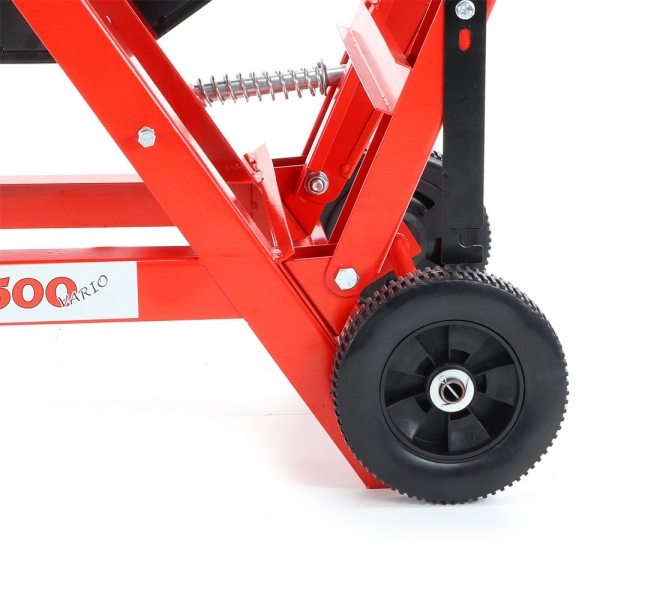 O bezpečné řezání se stará konstrukce kolébky a pohyblivý kryt, který zakrývá pilový kotouč po celou dobu řezu. Kolébka je vybavena speciálními prolisy proti protočení polena. Transportní kolečka slouží pro pohodlnou manipulaci.