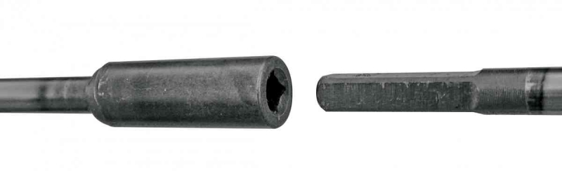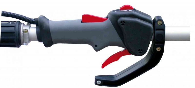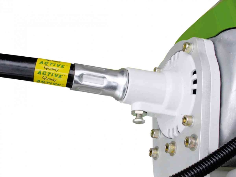 Umožňuje snadnou výměnu přídavných zařízení. Bezpečnostní zavírací kolík zaručuje stabilní bezpečné připojení. Díky tomuto spojovacímu článku Quick Fit System lze měnit víceúčelová přípojná zařízení během několika sekund – použití jako křovinořez nebo nůžky či plotostřih.