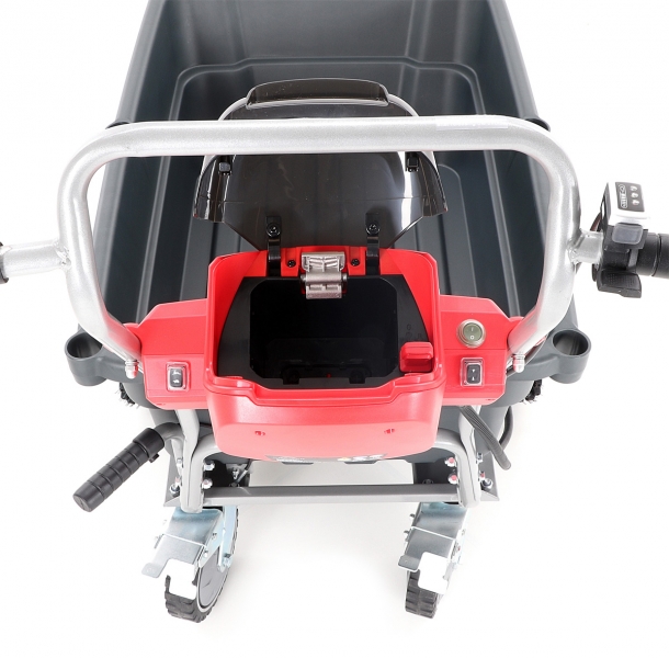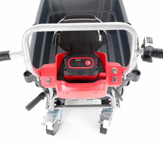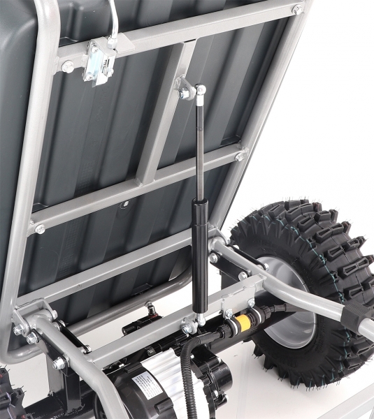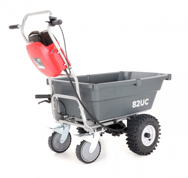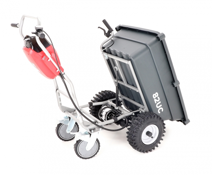 Pokud potřebujete přepravovat těžké nebo objemné předměty, jednoduše použijte extrémně stabilní bateriový motorový vozík Cramer 82V. Díky čtyřem kolům je velmi robustní a poskytuje úlevu pro vaše paže a záda, zejména na svazích a plošinách. Pro větší pohodlí a snadnou manipulaci lze návěs naklápět pomocí plynové tlakové pružiny. Díky bezkomutátorovému elektromotoru přepraví bateriový užitkový vozík vše bez hluku a emisí.