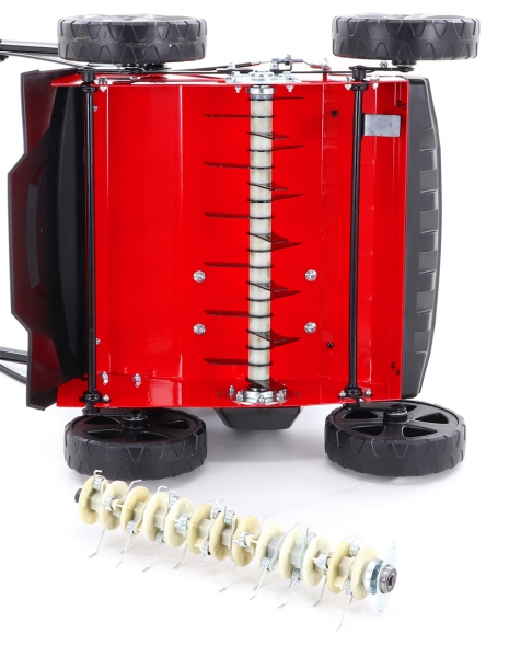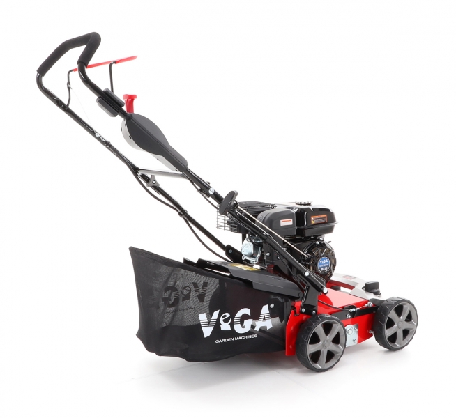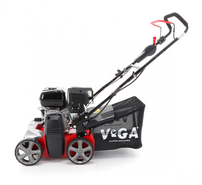 Motorový provzdušňovač trávníků VeGA TS40-W 3in1 s motorem VeGA 6HP o objemu 212 ccm, šířka pracovního záběru je 400 mm, plynulé centrální nastavením výšky, šasi je z oceli, sběrný koš o objemu 45l.