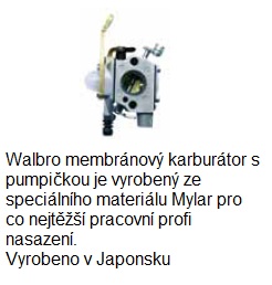 Na těchto motorech jsou používány karburátory Walbro typu WT. Manuální pumpička vstřikuje palivovou směs do karburátoru pro rychlé a snadné startování. Membrány jsou zhotoveny ze speciálního teflonového materiálu aby vydrželi s bezolovnatým palivem.