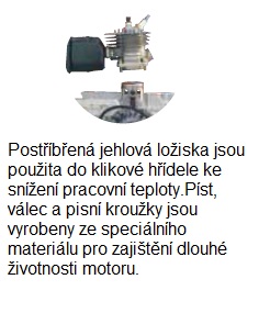 Použité postříbřené jehlové ložisko redukuje pracovní teplotu. Válce a písty byly specielně navrhnuty pro řetězové pily. Pístní kroužky jsou vyrobeny ze speciálního materiálu aby motor déle vydržel.