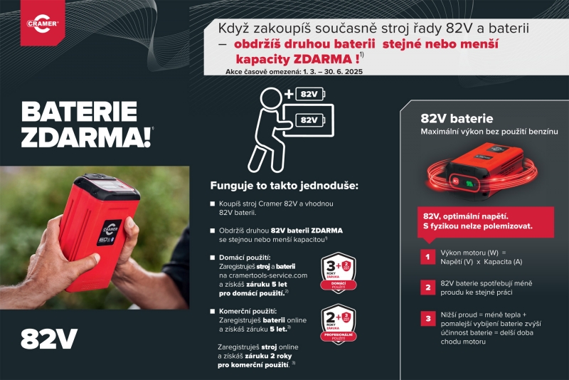 Když zakoupíte současně stroj a baterii řady 82V / Optimus,obdržíte druhou baterii stejné nebo menší kapacity ZDARMA!!!.
