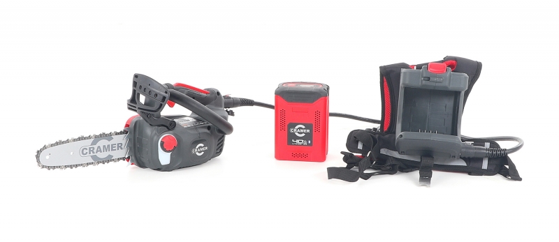 Nejlepší řetězová ruční pila Cramer ve své třídě poskytuje profesionálním uživatelům výkonnou, ale lehkou řetězovou pilu. S hmotností pouhých 2,1kg je Cramer 82TCS15 nejlehčím produktem na trhu a nabízí vynikající poměr výkonu a hmotnosti díky silnému 1,5 kW bezkomutátorovému motoru. Jeho výkon je srovnatelný s benzínovými produkty o objemu 35 ccm. Dodává se s ergonomickým zádovým popruhem pro snadné přenášení a uložení baterie Cramer 82V, která je připojena pomocí napájecího kabelu k motorové pile. Model 82TCS15 můžete také použít s bederním pásem Cramer, který je k dispozici samostatně (volitelné příslušenství).
