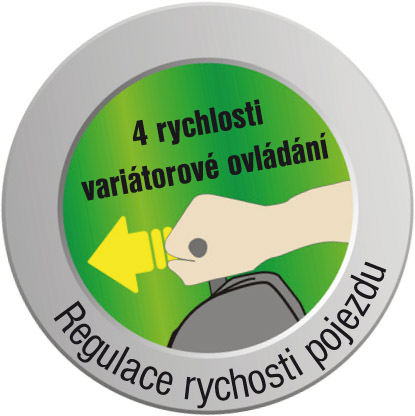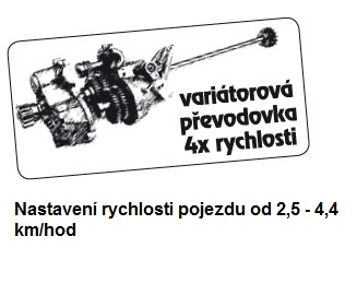 Další předností je možnost variabilní změny rychlosti sekačky díky níž se můžete pohodlně nastavit rychlost sečení podle aktuálních sekacích podmínek. Rychlost motorové sekačky je možné regulovat v rozmezí 2,5 - 4,4 km/hod pomocí variátorové převodovky. Tento systém umožňuje nastavit 4x rychlosti pojezdu nezávisle na otáčkách motoru.
