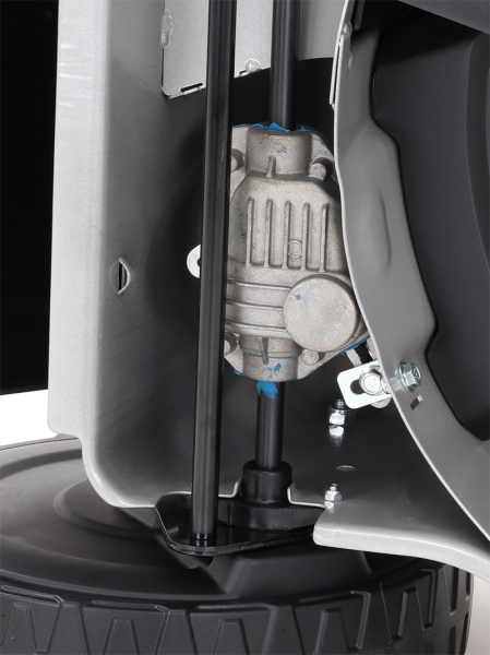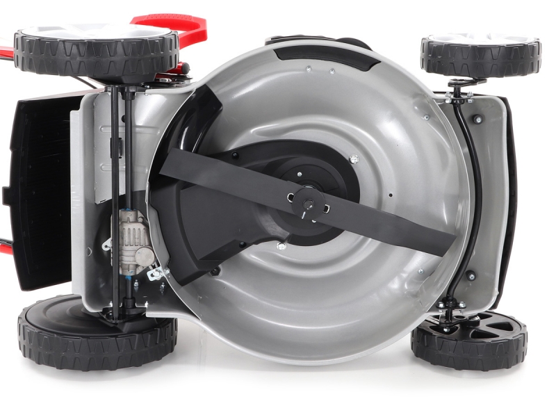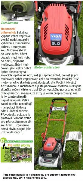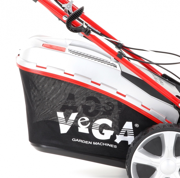 Velká zadní pojezdová kola i přední kola jsou uložena v oboustranných kuličkových ložiscích, centrální nastavení výšky sečení je u značky VeGA samozřejmostí.