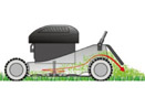 V extrémních podmínkách je možné otevřít kryt na straně šasi a nasadit deflektor bočního výhozu. Je to obzvláště efektivní, pokud máte vysokou, mokrou trávu. Výšku střihu trávníku můžete pohodlně zvolit pomocí samostatné páky centrálního nastavení výšky.