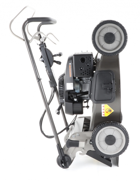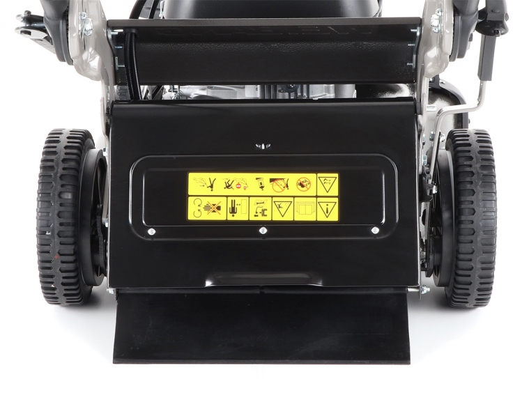 Novinkou sekačky je funkce tzv. "CHYTRÉ ŘEŠENÍ", sekačku lze pro ekonomické uskladnění, snadné čištění, servisování otočit a postavit na zadní speciální patky šasí, tímto se snadno dostanete na spodní část žacího ústrojí, uložení náprav a převodovku. Ergonomicky upravená madla se dají variabilně nastavit do jakékoli výšky za pomocí profesionálních masivních celokovových rychloupínáků. Speciální metalický komaxitový nástřik s kladívkovou úpravou (3 vrstvy nástřiku), který výrazně umocňuje luxusní vzhled a eleganci.