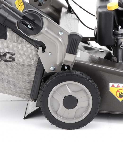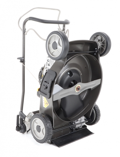 Novinkou sekačky je funkce tzv. "CHYTRÉ ŘEŠENÍ", sekačku lze pro ekonomické uskladnění, snadné čištění, servisování otočit a postavit na zadní speciální patky šasí, tímto se snadno dostanete na spodní část žacího ústrojí, uložení náprav a převodovku. Ergonomicky upravená madla se dají variabilně nastavit do jakékoli výšky za pomocí profesionálních masivních celokovových rychloupínáků. Novinkou letošní sezóny je speciální metalický komaxitový nástřik s kladívkovou úpravou (3 vrstvy nástřiku), který výrazně umocňuje luxusní vzhled a eleganci.