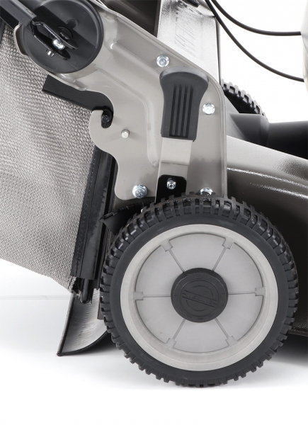 Novinkou sekačky je funkce tzv. "CHYTRÉ ŘEŠENÍ", sekačku lze pro ekonomické uskladnění, snadné čištění, servisování otočit a postavit na zadní speciální patky šasí, tímto se snadno dostanete na spodní část žacího ústrojí, uložení náprav a převodovku. Ergonomicky upravená madla se dají variabilně nastavit do jakékoli výšky za pomocí profesionálních masivních celokovových rychloupínáků. Novinkou letošní sezóny je speciální metalický komaxitový nástřik s kladívkovou úpravou (3 vrstvy nástřiku), který výrazně umocňuje luxusní vzhled a eleganci.