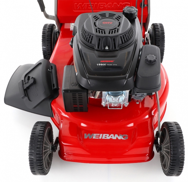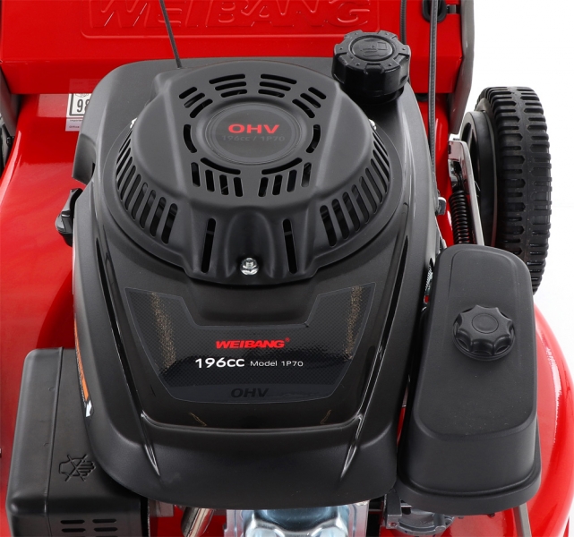 Sekačka WEIBANG WB 537 SLCV 6in1 RED LINE je určena na středně velké až velké travnaté plochy. Její neskutečná výbava, design a kvalitní zpracování z ní dělají doslova perlu v této středně vyšší třídě travních sekaček s pojezdem. Sekačka WEIBANG WB 537 SLCV 6in1 vyniká speciálním pevným a masivním ocelovým šasim. Velkou předností této sekačky je variabilnost použití funkcí 6 in 1, což znamená, že sekačka WEIBANG WB 537 SLCV 6in1 umí sbírat posečenou trávu do koše, mulčuje, vyhazuje trávu bokem, zadním deflektorem a má variabilní pojezd daný 7 rychlostní variátorovou převodovkou. Výhoda hodně silného motoru o výkonu 7 HP a nože s velkými lopatami Vám perfektně sebere i přerostlou mokrou trávu. Pogumovaná sendvičová kola jsou uložena v oboustranných kuličkových ložiscích, centrální nastavení výšky sečení je u této značky samozřejmostí. Velkým nadstandardem u této sekačky je použita speciální třecí spojka na noži sekačky pod unášečem, která je schopna prokluzu nože při naražení do pevné překážky. Tato funkce může eliminovat škody na sekačce způsobené nárazem nože do překážky. Ergonomická rukojeť s ovládacími prvky otáček motoru a speciální povlak na obvodu sběracího koše, který stimuluje proud vzduchu, aby se neprášilo na obsluhu. Dále je tato sekačka vybavena pevnými zadními koly a sklopnou rukojetí pro snadné uskladnění a přepravu. Masivní žačí nůž s mohutnými vyhazovacími "lopatami - tzv. BIG BLADE" a velký koš spolu se zajímavou cenou dělají z této sekačky WEIBANG WB 537 SLCV 6in1 kvalitního pomocníka s bojem proti zelenému živlu. Dalším velkým unikátem je motor, který patří mezi to nejlepší a nejsilnější co WEIBANG v této třídě nabízí. Jedná se o profeisonální hodně silný motor rozvodu OHV o výkonu 7 HP a vysokým kroutícím momentem 10,5 Nm - 196 ccm. Další profesionální prvek, kterým sekačka disponuje je masivní kovová variabilní variátorová převodovka s garantovanou dlouhou životností.