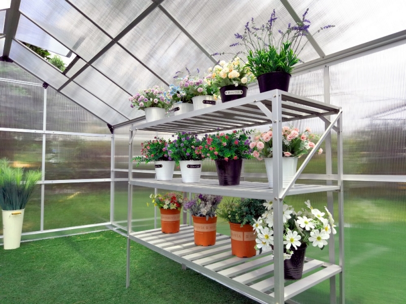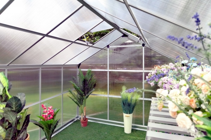 Základem každého kvalitního polykarbonátového skleníku je pevná konstrukce z eloxovaných zesílených hliníkových profilů a kvalitní polykarbonát. Naše skleníky VeGA a Komfort jsou osazeny kvalitním tepelně-izolačním dvoustěnným komůrkovým polykarbonátem s UV slunečním filtrem o síle desek 4 a 6 mm. Dalším podstatným stavebním bodem každého skleníku je konstrukční spojení polykarbonátových desek s hliníkovou nosnou konstrukcí. Skleníky VeGA a Komfort mají speciální drážkovou konstrukci, jedná se o moderní dokonalé řešení, které zásadně zvýšilo celkovou pevnost a stabilitu celého skleníku. Oproti zastaralému drátkovému systému, který se už téměř moc nepoužívá, se zároveň zvýšila i odolnost skleníku vůči nárazům větru a sněhové zátěži. Ke skleníkům je zdarma dodávána masivní pozinkovaná základna sloužící pro bezproblémové používání skleníku i bez pevného základu. Velice nadstandardní výška skleníků se základnou 191-250 cm dle modelů je koncipována pro běžné evropské uživatele, kteří mají rádi dostatečný prostor a užitkový komfort. Dále jsme s výrobcem vyjednali úpravy pro navýšení počtu oken na sklenících a zároveň přiobjednali více oken k jednotlivým modelům, kdy jak sami dobře víte, že správné a dostatečné odvětrání je tím podstatným bodem pěstitelského úspěchu. Dalším kritériem našich zákazníků byla větší šířka skleníků, proto jsme se rozhodli vyjít těmto potřebám vstříc a nabízíme modely rozšířené a to od 184 do 281 cm šíře.
