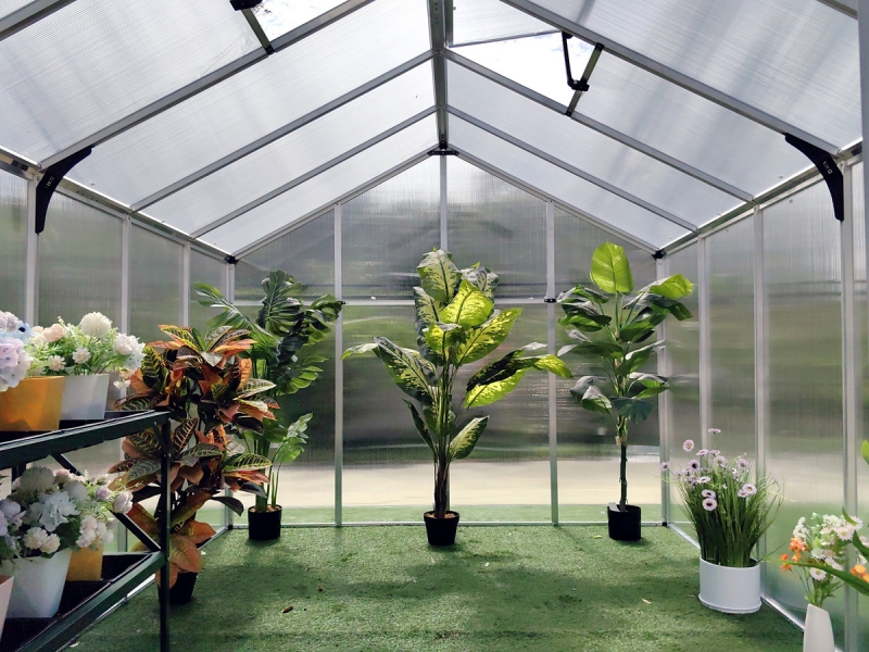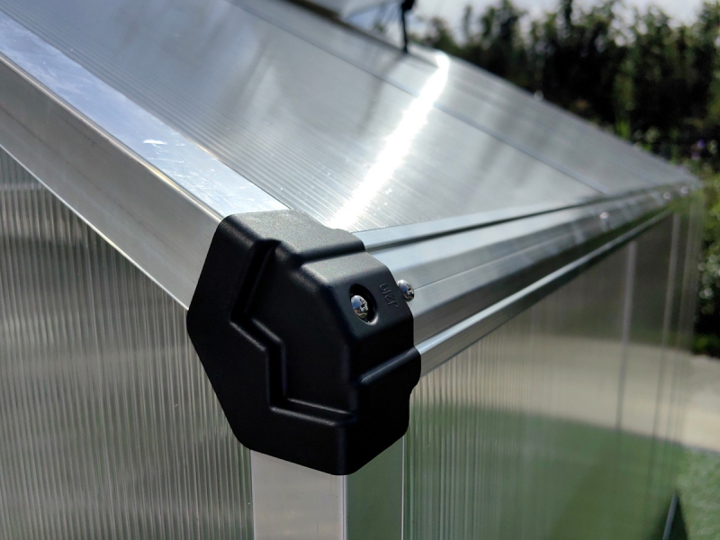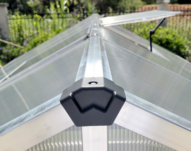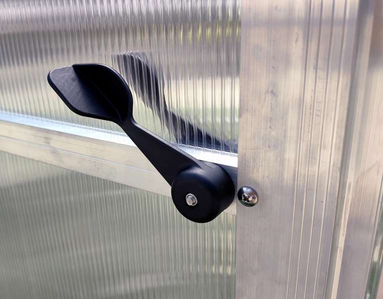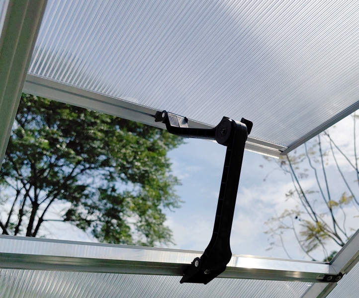 Montáž skleníku je rychlá a jednoduchá díky speciálním spojkám, do kterých se hliníkové profily snadno vloží a zajistí šroubkem. Pro ještě větší pohodlí můžete dokoupit automatický otvírač oken, který se postará o správnou cirkulaci vzduchu, aniž byste museli okna manuálně otevírat.