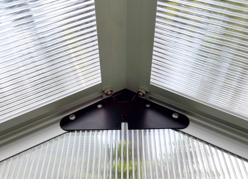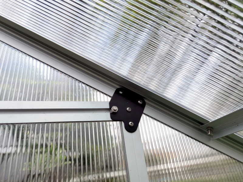 Základem každého kvalitního polykarbonátového skleníku je pevná konstrukce z eloxovaných zesílených hliníkových profilů a kvalitní polykarbonát. Naše skleníky VeGA a Komfort jsou osazeny kvalitním tepelně-izolačním dvoustěnným komůrkovým polykarbonátem s UV slunečním filtrem o síle desek 4 a 6 mm. Dalším podstatným stavebním bodem každého skleníku je konstrukční spojení polykarbonátových desek s hliníkovou nosnou konstrukcí. Skleníky VeGA a Komfort mají speciální drážkovou konstrukci, jedná se o moderní dokonalé řešení, které zásadně zvýšilo celkovou pevnost a stabilitu celého skleníku. Oproti zastaralému drátkovému systému, který se už téměř moc nepoužívá, se zároveň zvýšila i odolnost skleníku vůči nárazům větru a sněhové zátěži. Ke skleníkům je zdarma dodávána masivní pozinkovaná základna sloužící pro bezproblémové používání skleníku i bez pevného základu. Velice nadstandardní výška skleníků se základnou 191-250 cm dle modelů je koncipována pro běžné evropské uživatele, kteří mají rádi dostatečný prostor a užitkový komfort. Dále jsme s výrobcem vyjednali úpravy pro navýšení počtu oken na sklenících a zároveň přiobjednali více oken k jednotlivým modelům, kdy jak sami dobře víte, že správné a dostatečné odvětrání je tím podstatným bodem pěstitelského úspěchu. Dalším kritériem našich zákazníků byla větší šířka skleníků, proto jsme se rozhodli vyjít těmto potřebám vstříc a nabízíme modely rozšířené a to od 184 do 281 cm šíře.
