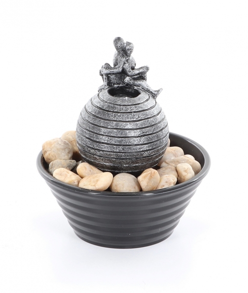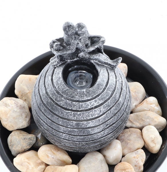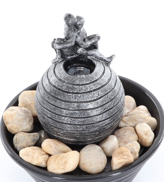 Pokojová fontána vyobrazující romantický pár s LED osvětlením bude rozhodně příjemnou oázou klidu, pohody a romantiky ve Vašem bytě. Pokojová fontána je vybavena kvalitní a velmi tichou vodní pumpou. Fontána vytváří romantickou atmosféru a navozuje velmi příjemnou pohodu a relax spojený s osvěžující ionizací vzduchu.