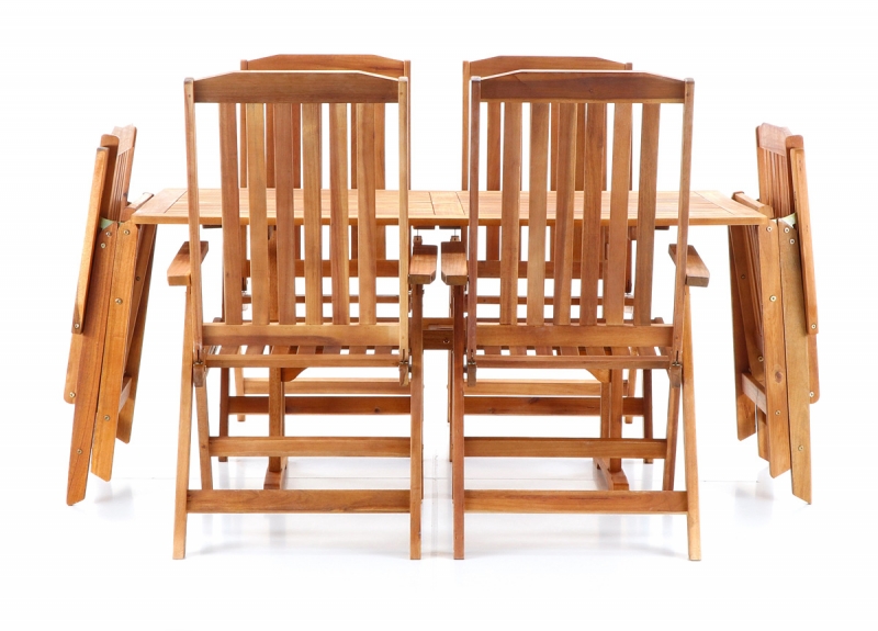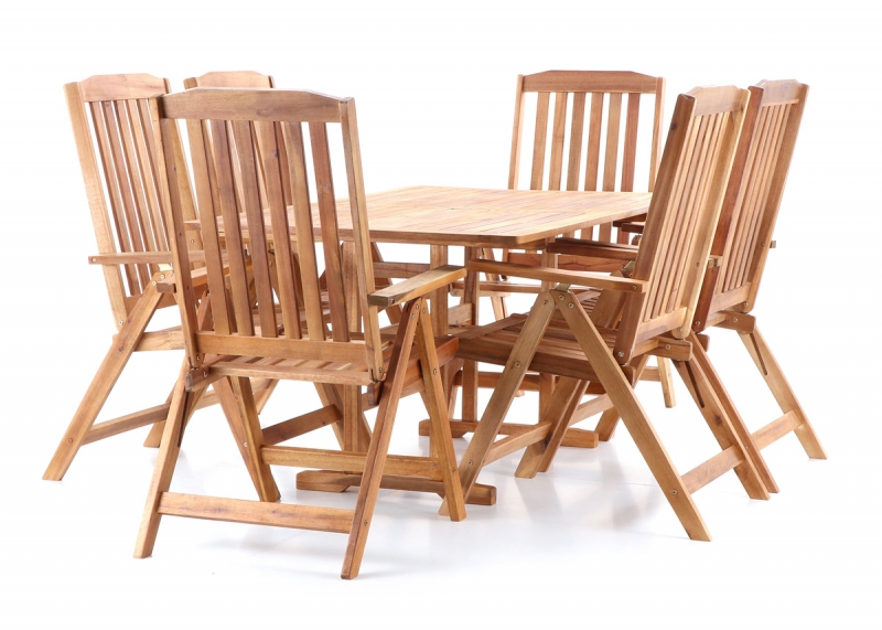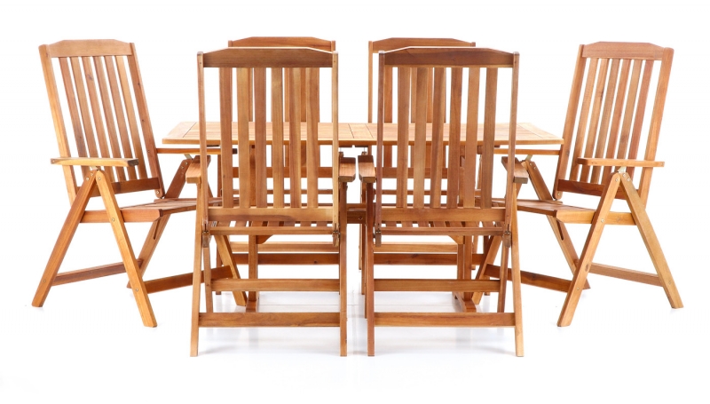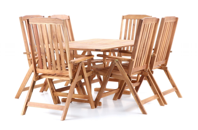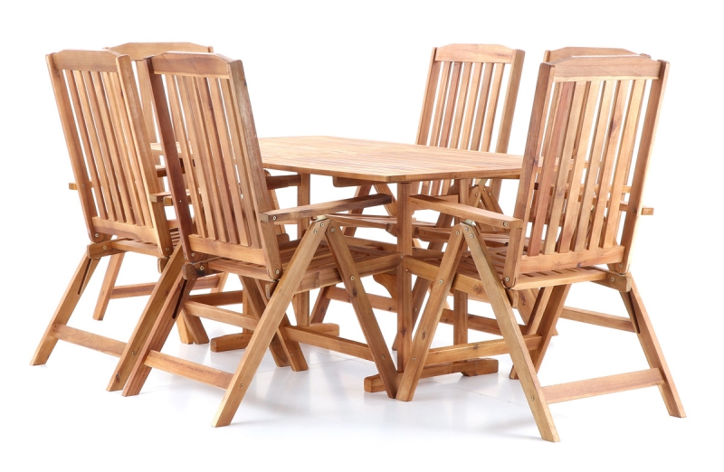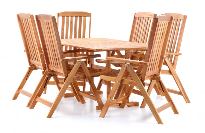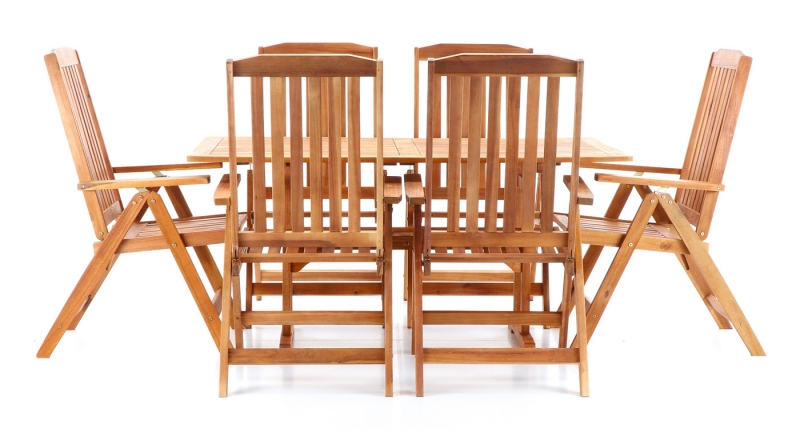 Luxusní dřevěný zahradní nábytek QUEEN VeGA 6 se skládá z 6-ti polohovatelných křesel a obdelníkového stolu z exotického, velice trvanlivého a tvrdého dřeva akácie.