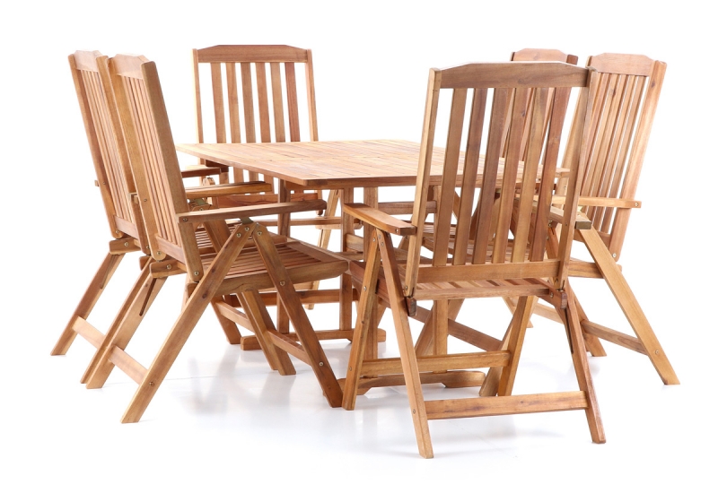 Dřevo akácie pochází původem z tropických lesů Východní Asie a Jižní Ameriky. Akácie je rychle rostoucí dřevina s krásnou jemnou a plamennou texturou. Dřevo akácie má olivově (medově) hnědé až šedohnědé odstíny, které doplňují tmavší pruhy. Tím zahradní nábytek z akáciového dřeva dostává příjemný teplý vzhled. Další výhodou zahradního nábytku z dřeva z akácie je odolnost proti biologickému znehodnocení a stárnutí.