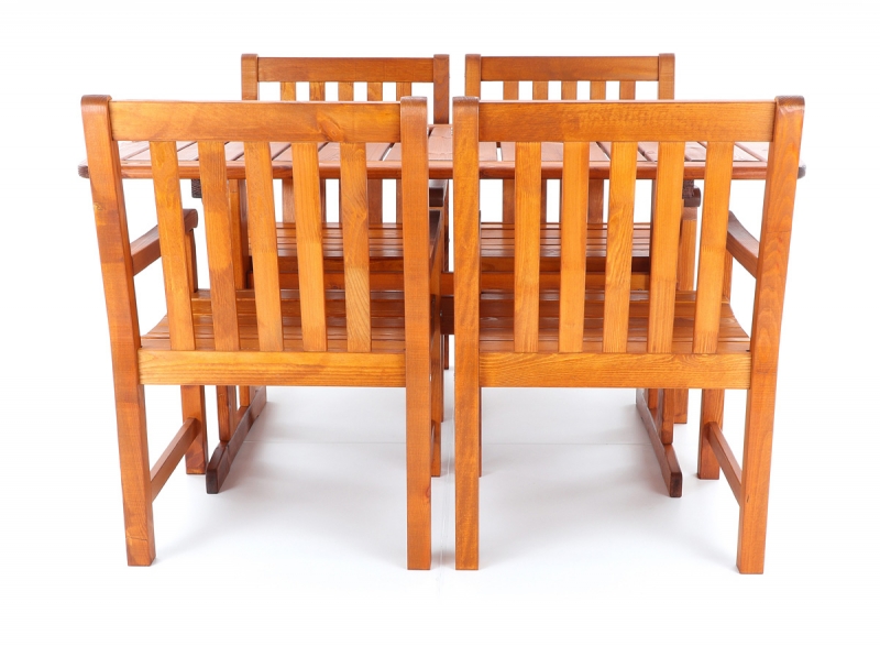 Luxusní masivní stolová sestava šesti křesel stolu z odolného a trvanlivého dřeva severské boroviceOdolné dřevo a velmi robustní konstrukce řadí tuto sestavu mezi nejmasivnější výrobky ve své kategorii na trhu.