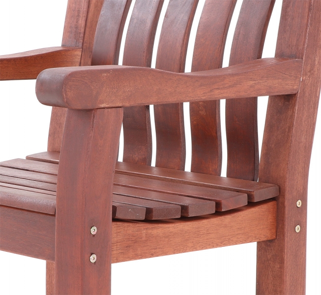 Masivní zahradní židle RODOS je vyrobena z tmavě červeného meranti. Meranti je označení pro více druhů dřevin z rodu Shorea pocházejících z jihovýchodní Asie. Meranti je nejžádanějším z tropických materiálů na výrobu zahradního nábytku. Tato dřevina našla své uplatnění jak v interiéru pro svůj dekorativní vzhled (má unikátní červenohnědou barvu, díky které na každém kusu nábytku dokonale vynikne kresba dřeva), ale především v exteriéru na výrobu zahradního nábytku, oken a dveří pro svoji vynikající trvanlivost, dlouhou životnost, vysokou tvrdost a dobrou opracovatelnost.