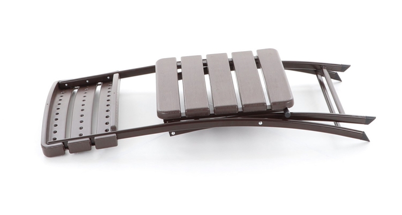 Skládací stůl je zhotoven z ocelových profilů povrchově dokončen komaxitovou barvou, deska stolu je v imitaci masivního dřeva z lisovaného plastu s UV filtrem.