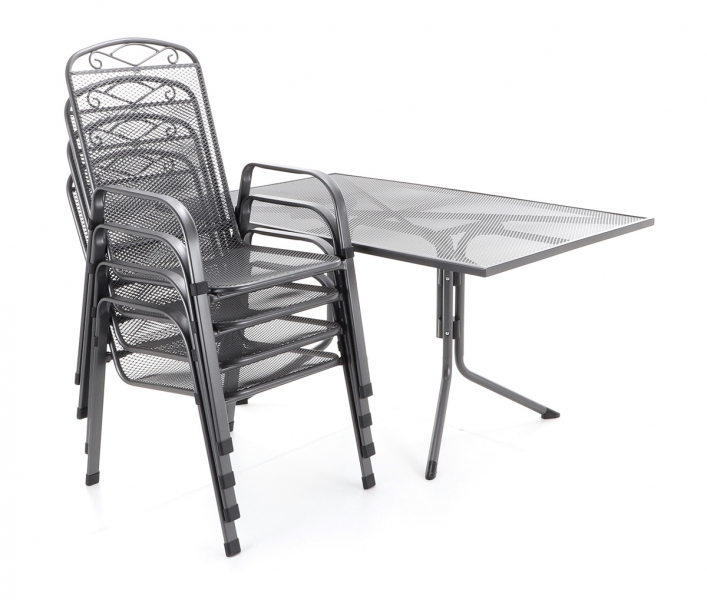 Výplet s oky s vysokou pevností. Stohovatelné. Speciální 4-vrstvá povrchová úprava s NANO technologií pro venkovní použití ve vlhkém prostředí. Odolné vůči vodě, slunci a mrazu. Polyesterová vrstva s UV filtrem. Ideální pro venkovní gastro použití v restauracích nebo terasách. Test GS kvality.