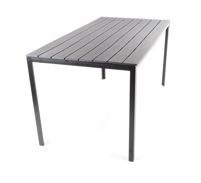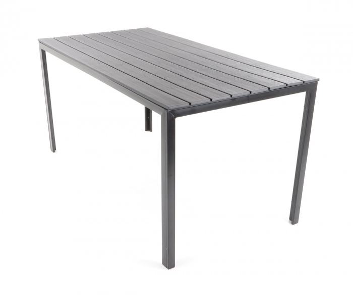 Stůl je zhotoven z ocelových profilů povrchově dokončen komaxitovou barvou. Deska stolu je v imitaci masivního dřeva z lisovaného plastu s UV filtrem.