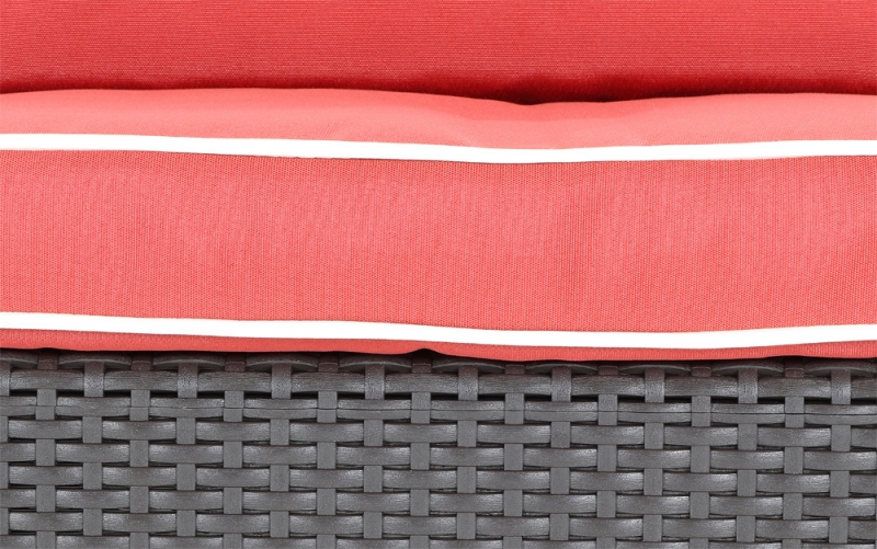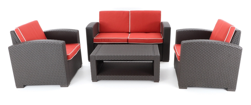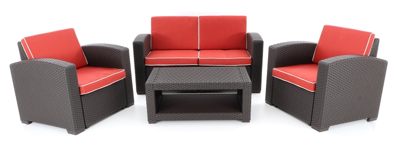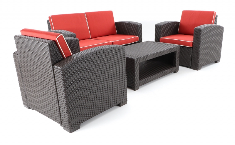 Vysoce odolné účinkům nepříznivých povětrnostních podmínek a UV záření. Barva konstrukce hnědá, polstry jsou červené barvy.