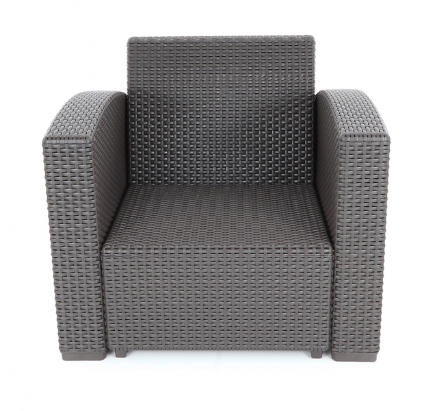 Nábytek má originální povrchovou strukturu napodobující přírodní ratan. Ideální pro pohodlné venkovní posezení na vaší zahradě či terase.