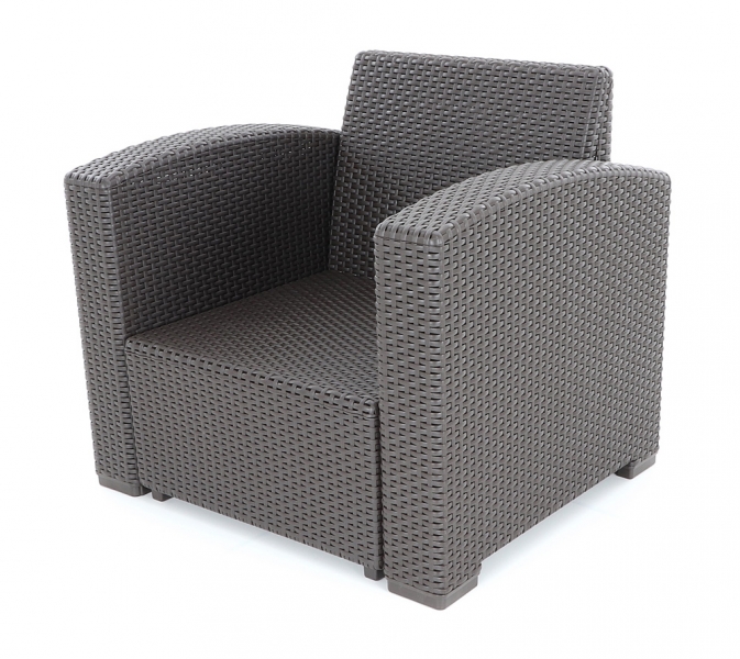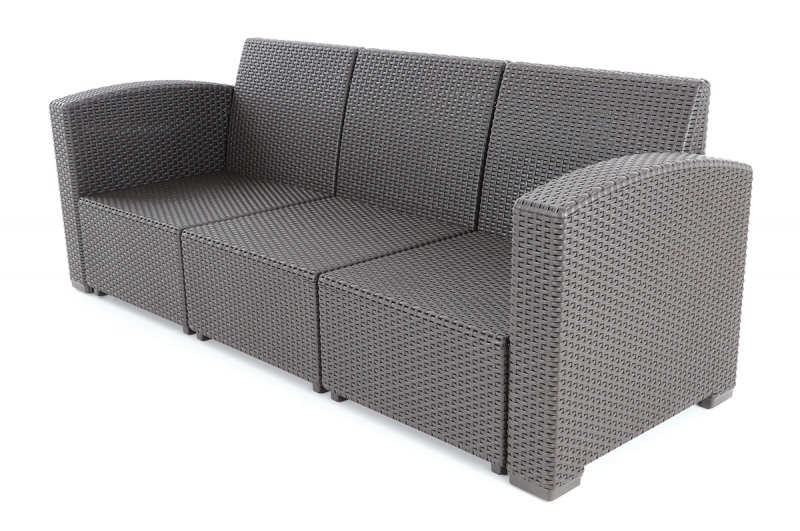 Nábytek má originální povrchovou strukturu napodobující přírodní ratan. Ideální pro pohodlné venkovní posezení na vaší zahradě či terase.