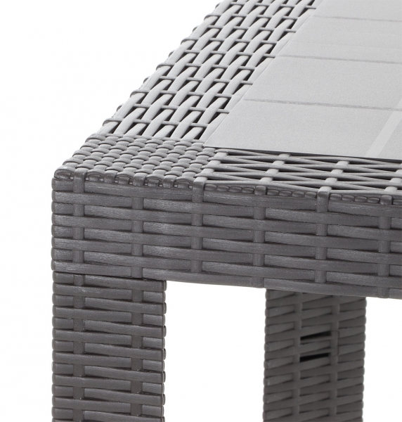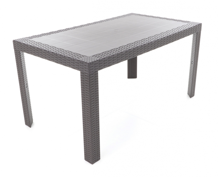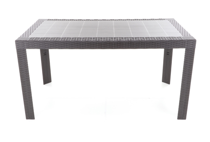Stůl je ve tvaru obdélníku v imitaci umělého ratanu s UV filtrem.