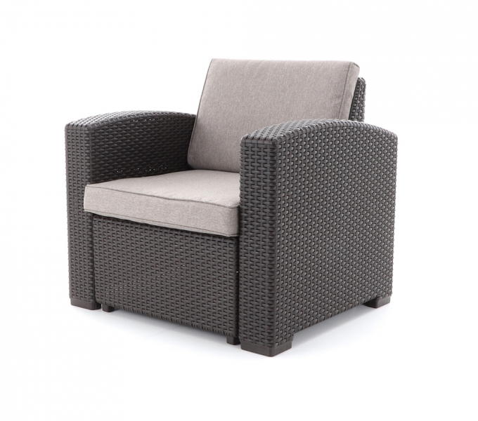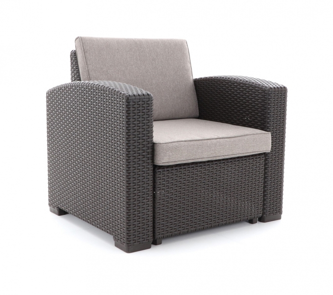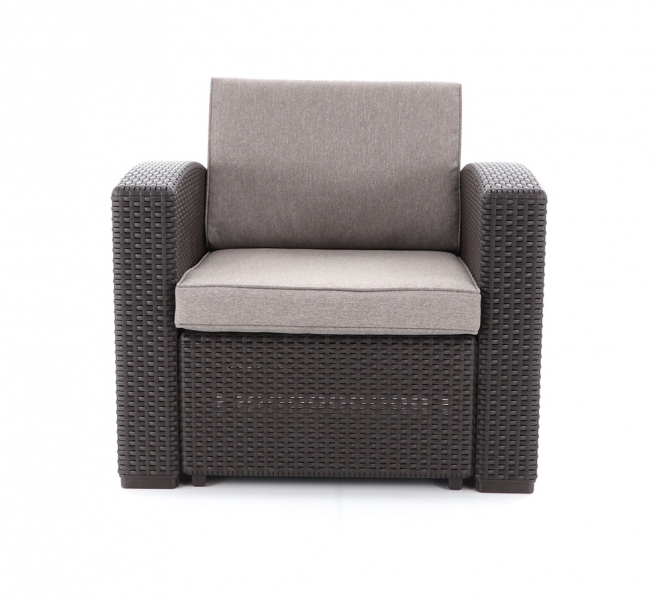 Vysoce odolné účinkům nepříznivých povětrnostních podmínek a UV záření. Barva konstrukce hnědá, polstry jsou hnědošedé barvy.