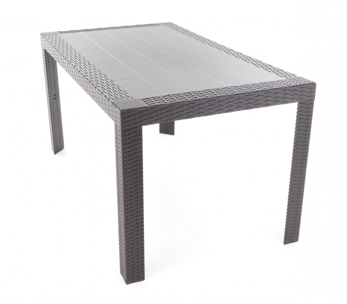Stůl je ve tvaru obdélníku v imitaci umělého ratanu s UV filtrem.