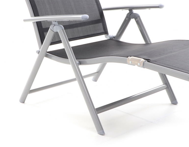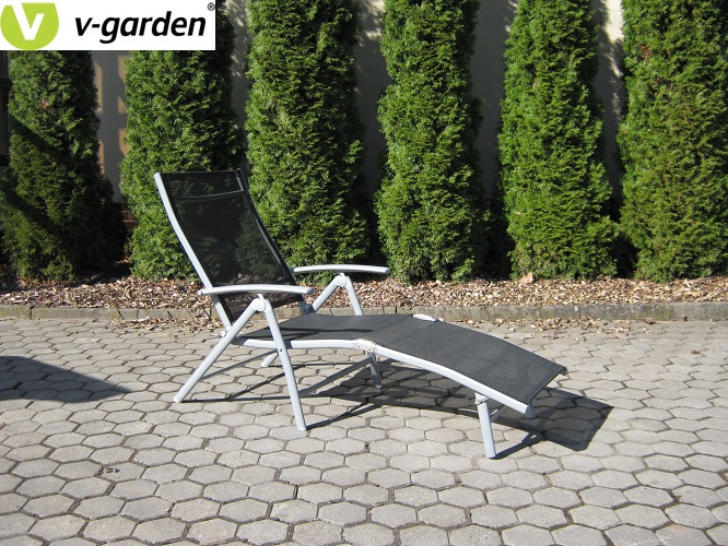 Polohovatelné skládací lehátko z hliníkových profilů dokončeno komaxitovou úpravou.