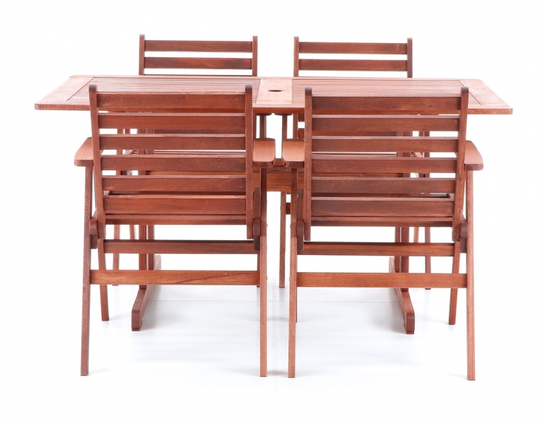 Luxusní masivní stolová sestava 4 křesel a stolu z exotického, velice trvanlivého a tvrdého dřeva meranti. Určeno do exteriérů, interiérů a pergolových prostor. Není vhodné pro používání ve vlhkém prostředí bez vhodné impregnace. Možno přiobjednat masivní podsedáky viz. ilustrační obrázek. Rozměry stolu: 150x90x74 cm, Rozměr křesla: 59x63x86 cm