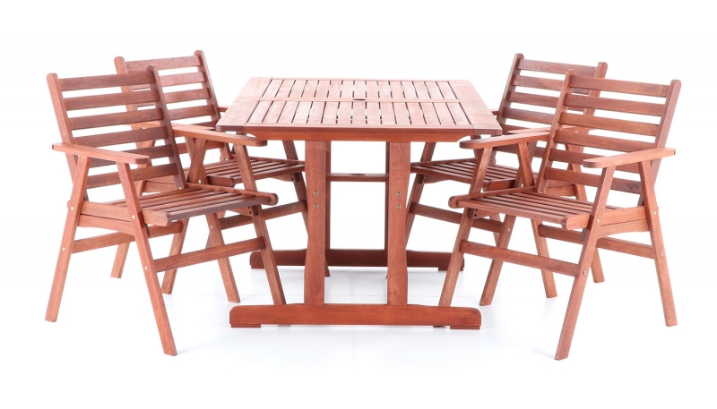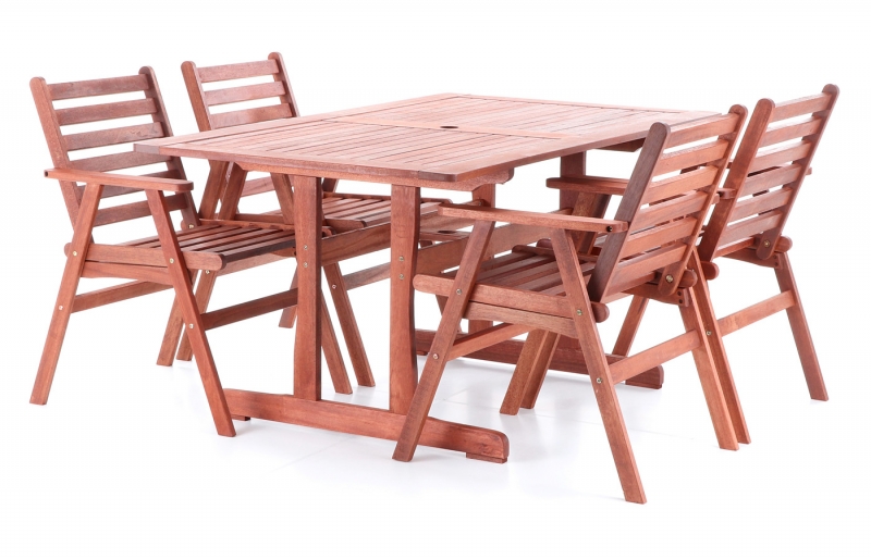 Luxusní masivní stolová sestava 4 křesel a stolu z exotického, velice trvanlivého a tvrdého dřeva meranti. Určeno do exteriérů, interiérů a pergolových prostor. Možno přiobjednat masivní podsedáky (tloušťka 6 cm) viz. ilustrační obrázek. Rozměry stolu: 150 x 90 x 74 cm. Rozměr křesla: 59 x 63 x 86 cm.