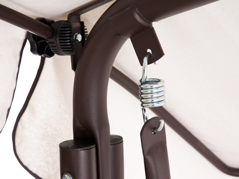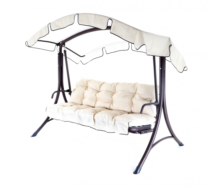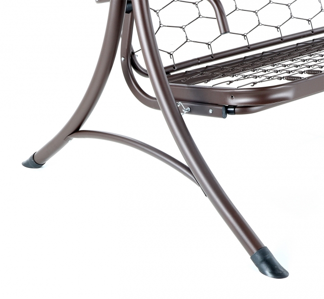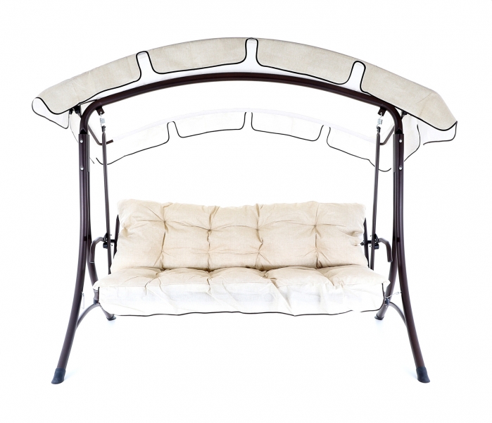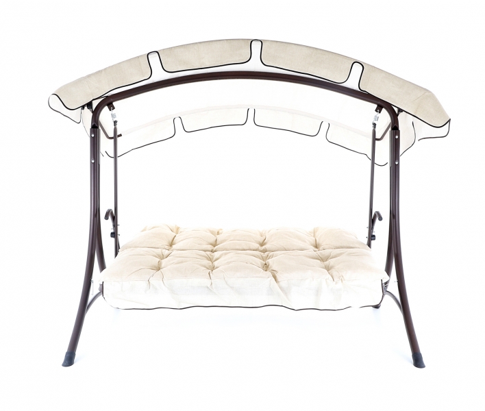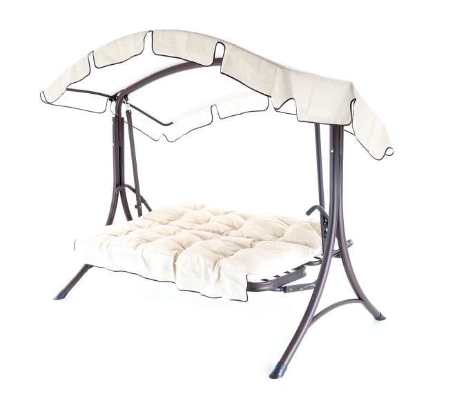 Kovová konstrukce podsedáku a opěradla je pro pohodlnost uživatelů vyplněna odpruženou drátěnou výztuhou. Masivní čalounění o síle 80 mm plně dokresluje charakter pohodlné luxusní houpačky pro ty nejnáročnější uživatelé. Jako speciální nadstandardní výbava je úprava houpačky do lůžkové úpravy, která se provede jednoduchou fixací podsedáku s opěradlem.