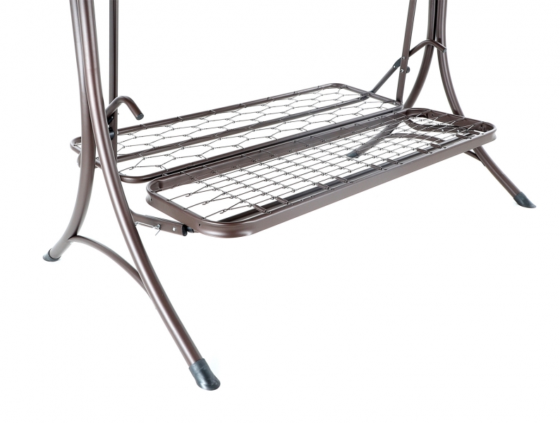 Zahradní třímístná houpací lavice s drátěným odpruženým sedákem.