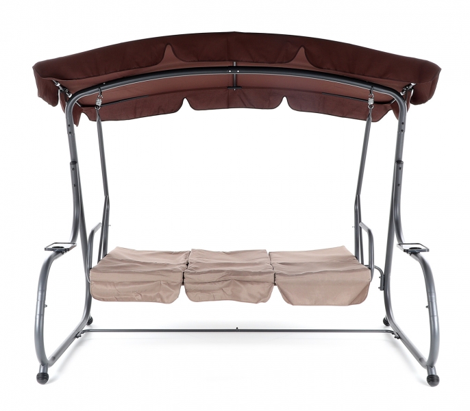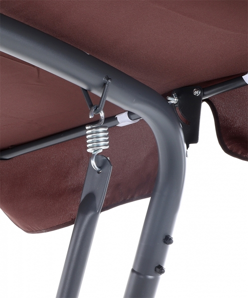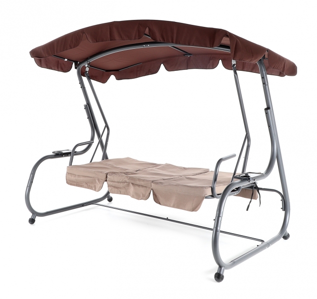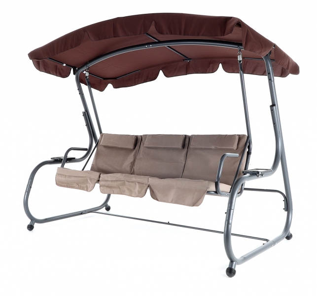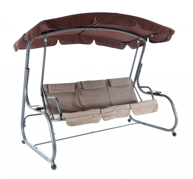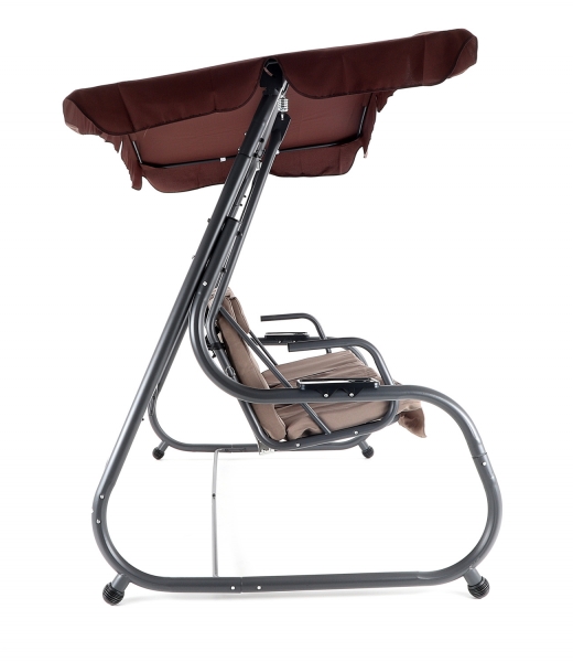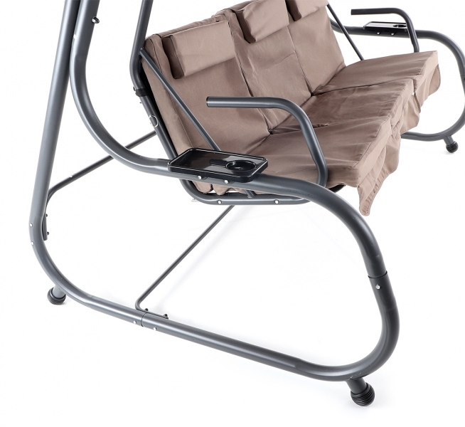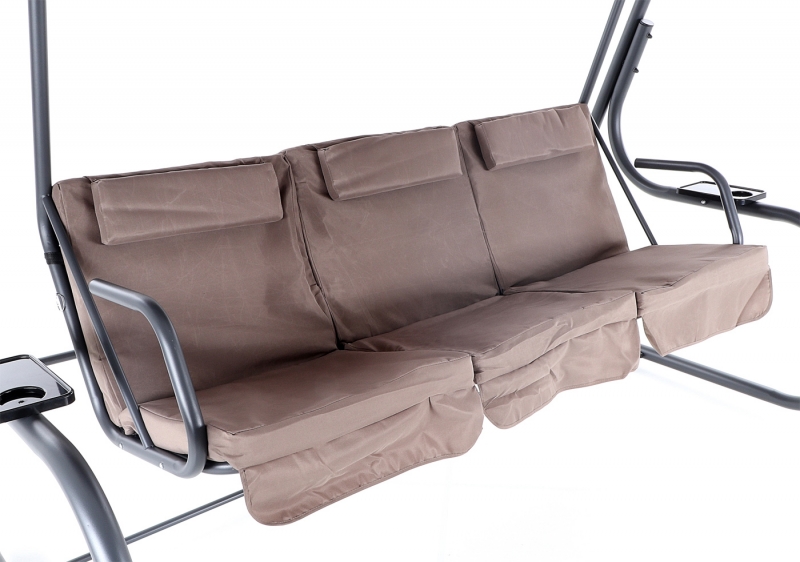Masivní čalounění s podhlavníky plně dokresluje charakter pohodlné luxusní houpačky pro ty nejnáročnější uživatelé. Jako speciální nadstandardní výbava je úprava houpačky do lůžkové úpravy, která se provede jednoduchou fixací podsedáku s opěradlem.