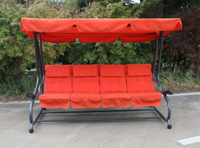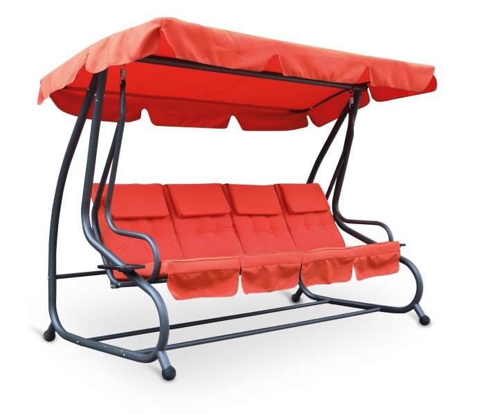 Při výrobě je použit speciálně upravený ocelový materiál o průměru trubek 48 mm pro vysokou tuhost. Povrchová úprava nábytku je provedena komaxitovou barvou. Kovová konstrukce podsedáku a opěradla je pro pohodlnost uživatelů vyplněna odpruženou pevnou textilní výztuhou. Masivní čalounění o síle 80 mm plně dokresluje charakter pohodlné luxusní houpačky pro ty nejnáročnější uživatelé.