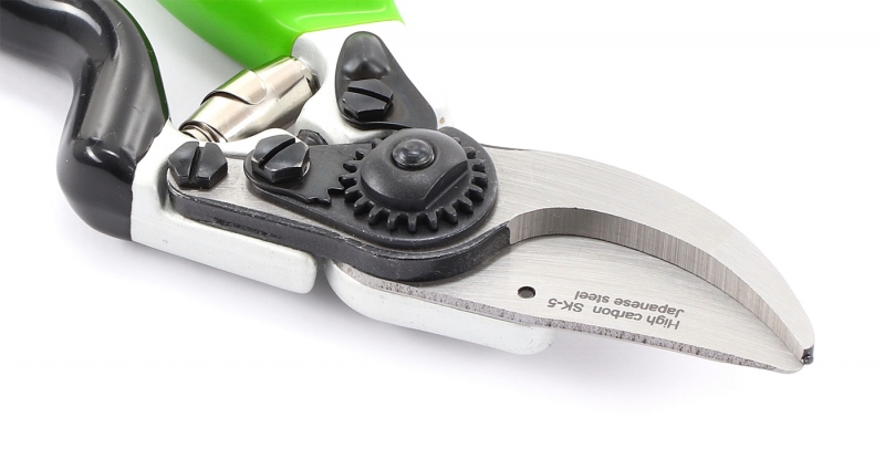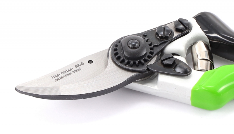 Čepel je vyrobena z uhlíkové oceli SK5, kovaná čepel, vše v nejvyšší kvalitě pro čistý a přesný střih. Rukojeti jsou pokryty měkkým plastovým materiálem.